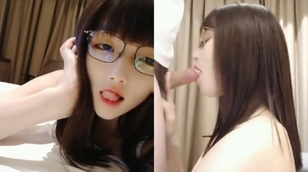 样子闷骚的华裔脸孔眼镜大学生美女在床上上网被大洋屌男友要求吃屌后入性感美臀